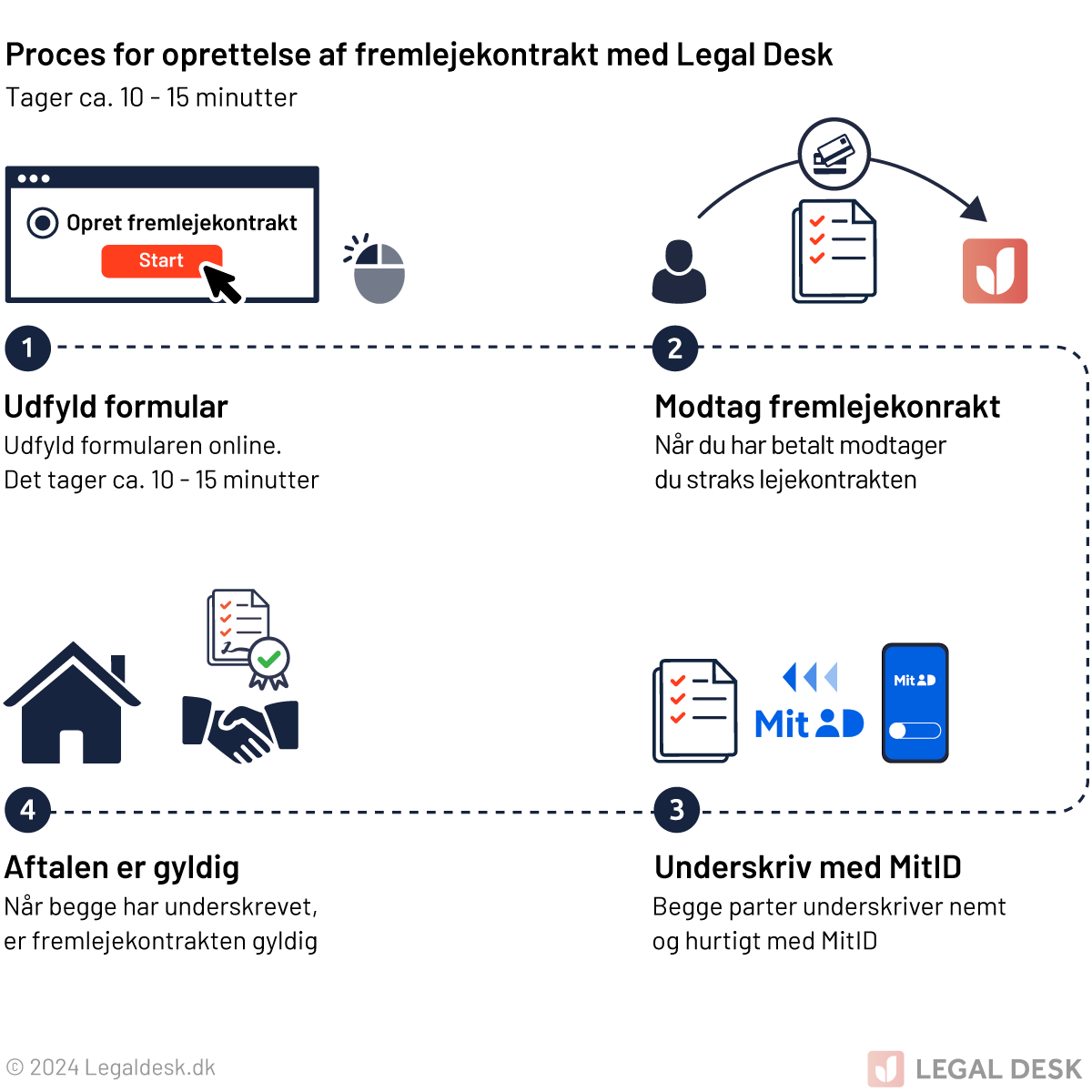 Ved at anvende Legal Desk, er du sikret en juridisk gyldig fremlejekontrakt, som tager højde for alle væsentlige forhold.